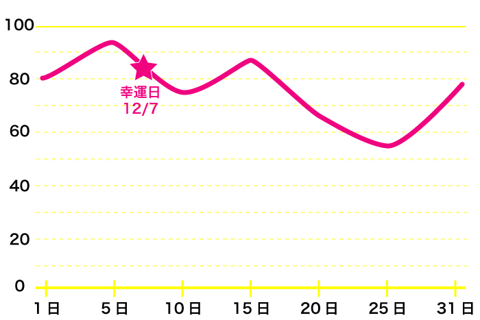 最も運気が高まるのは、【12月7日】あたりです。この時期は創造性が高まりそうです。自分をどんな風に表現していきたいかも明確になるかもしれません。恥ずかしいとか、マイナス評価を受けるのではないだろうか、などの弱気は不要です。あなた自身の心の中を、ストレートに言葉や態度にあらわしていきましょう。