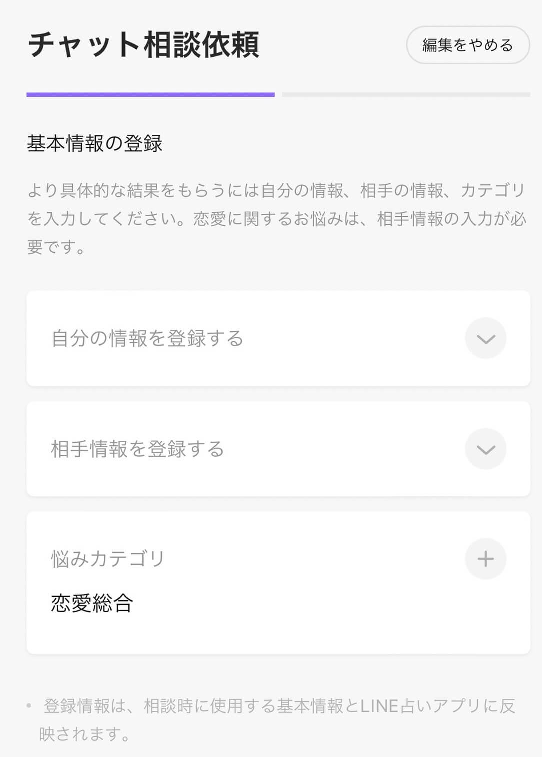 あなたご自身のプロフィールや、お相手のプロフィールを登録していない場合、鑑定前に記入しておきます。