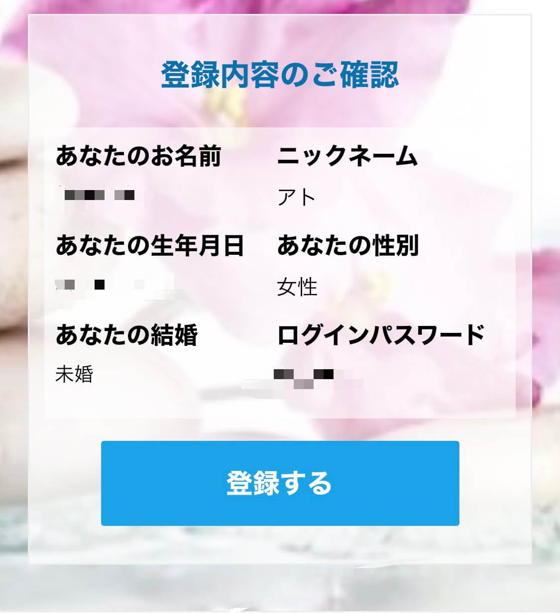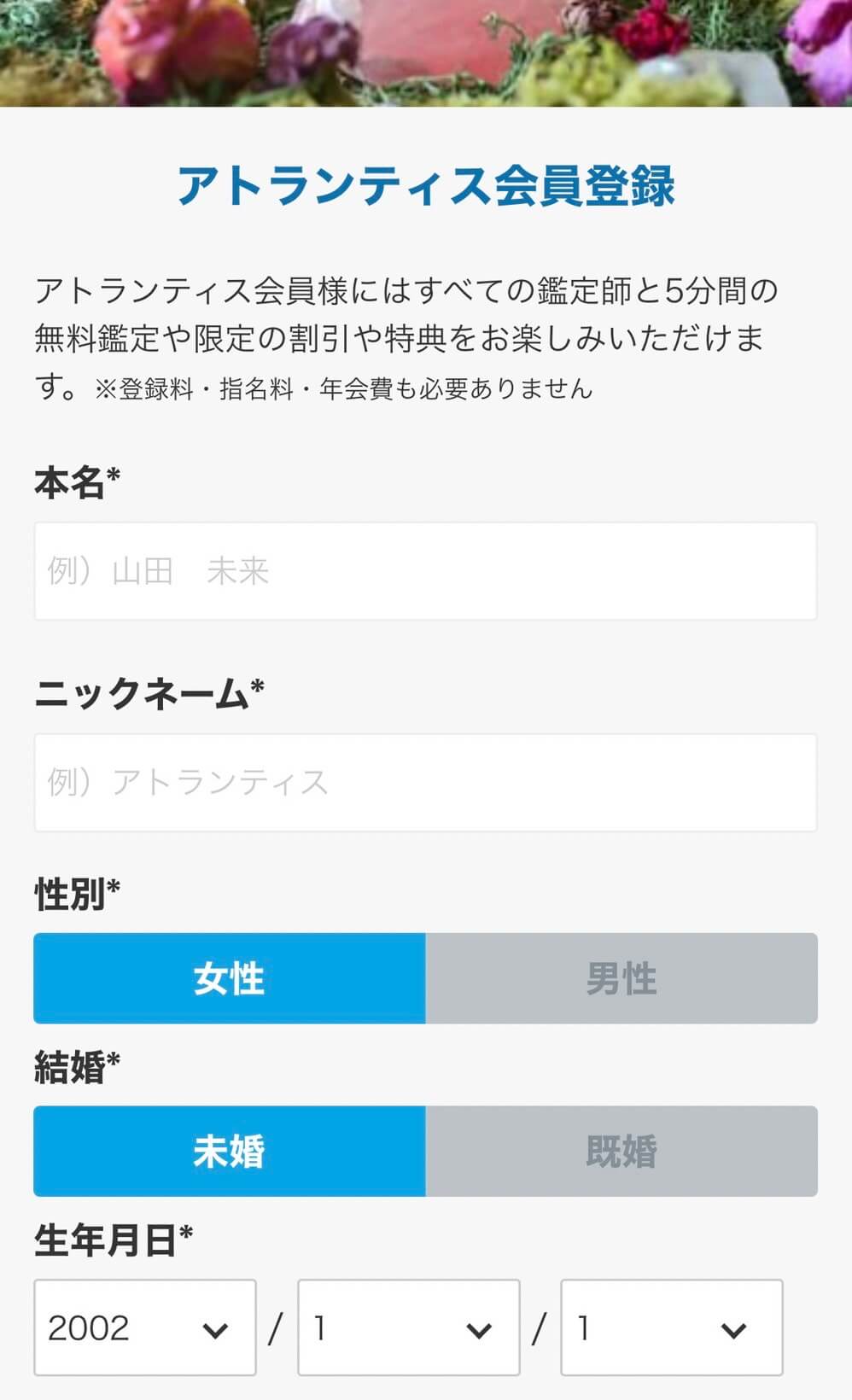 こちらで電話占いアトランティスの登録が完了しました!