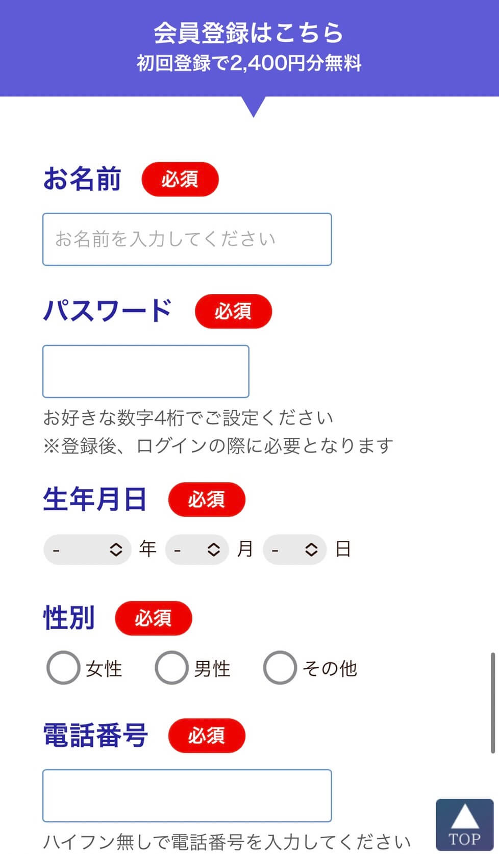 初回無料 初回2,400円分無料!